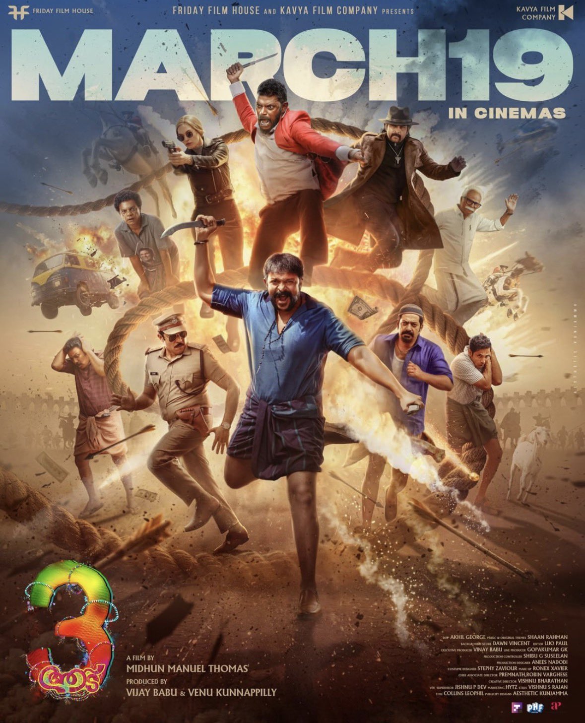 Aadu 3: One Last Ride – Part 1 is an Indian Malayalam-language fantasy comedy film written and directed by Midhun Manuel Thomas.It is the sequel to Aadu 2 (2017) and the third installment of Aadu franchise and the first installment of a sub-duology.The film was jointly produced by Vijay Babu and Venu Kunnappilly for Friday Film House and Kavya Film Company, respectively.It stars an ensemble cast including Jayasurya, Saiju Kurup, Vinayakan, Renji Panicker, Vijay Babu, Sunny Wayne, Dharmajan Bolgatty, Bhagath Manuel, Indrans, Bijukuttan, Sudhi Koppa, Harikrishnan, reprising their roles, with Alleya Bourne and Krishna Jeev newly joining the cast.